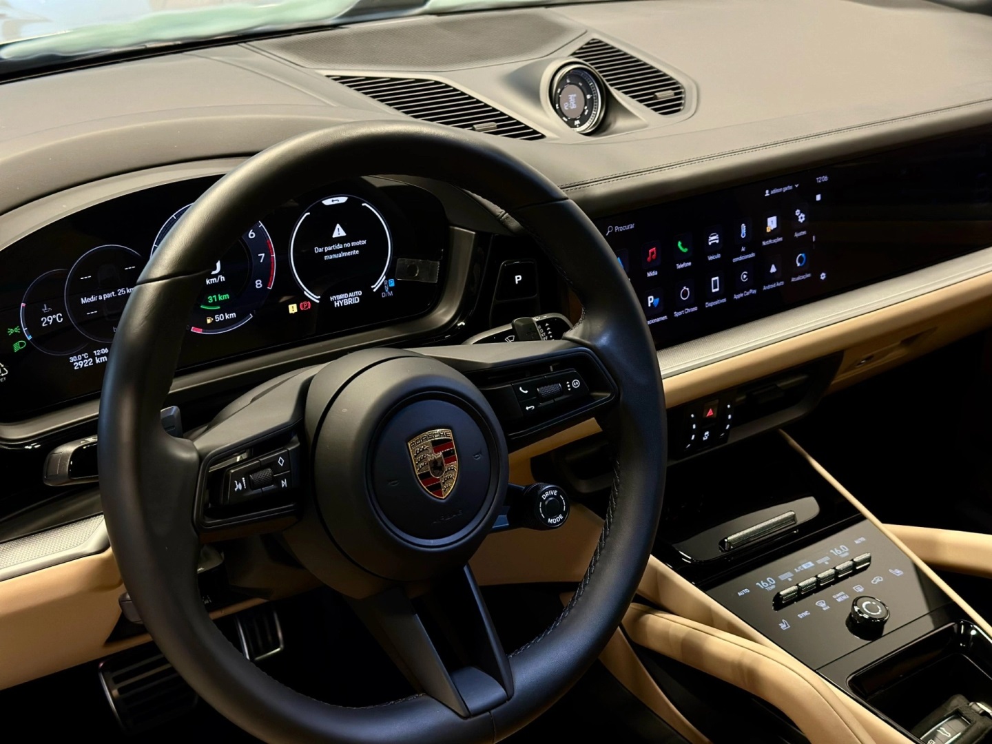 Porsche Cayenne Coupé E-Hybrid 3.0 Turbo 20240 km470 cv combinadosMotor 3.0 V6 Turbo + motor elétrico (híbrido plug-in)Tração integral (AWD)Auto HoldHead-up displayAlerta de ponto cegoAlerta de mudança de faixaControle de traçãoControle de estabilidadeCâmbio automático Tiptronic S de 8 marchas Outros Opcionais: Comando de áudio no volante, Controle de estabilidade, Direção Elétrica, Distribuição eletrônica de frenagem, Farol de neblina, Kit Multimídia, Pára-choques na cor do veículo.